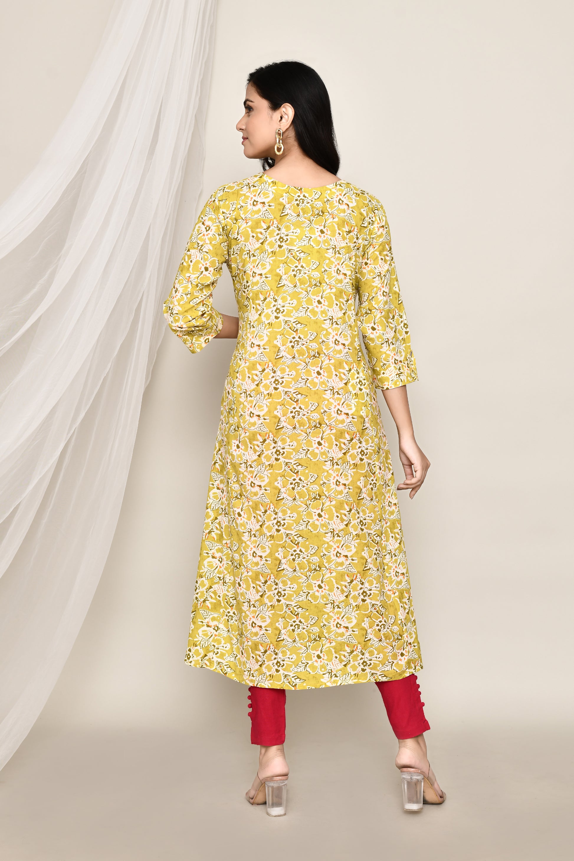 Jaipuri Yellow Printed A-Line Kurti