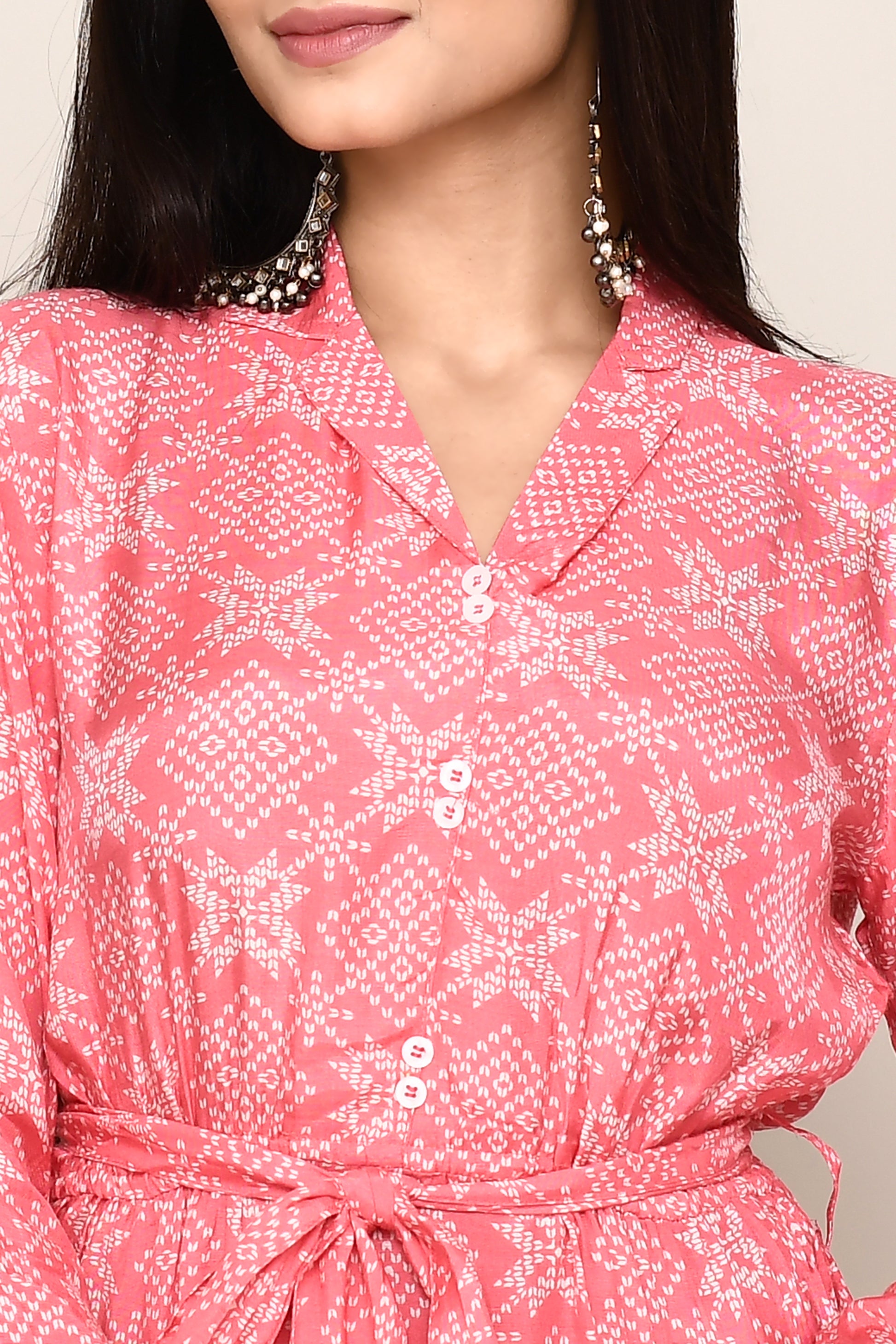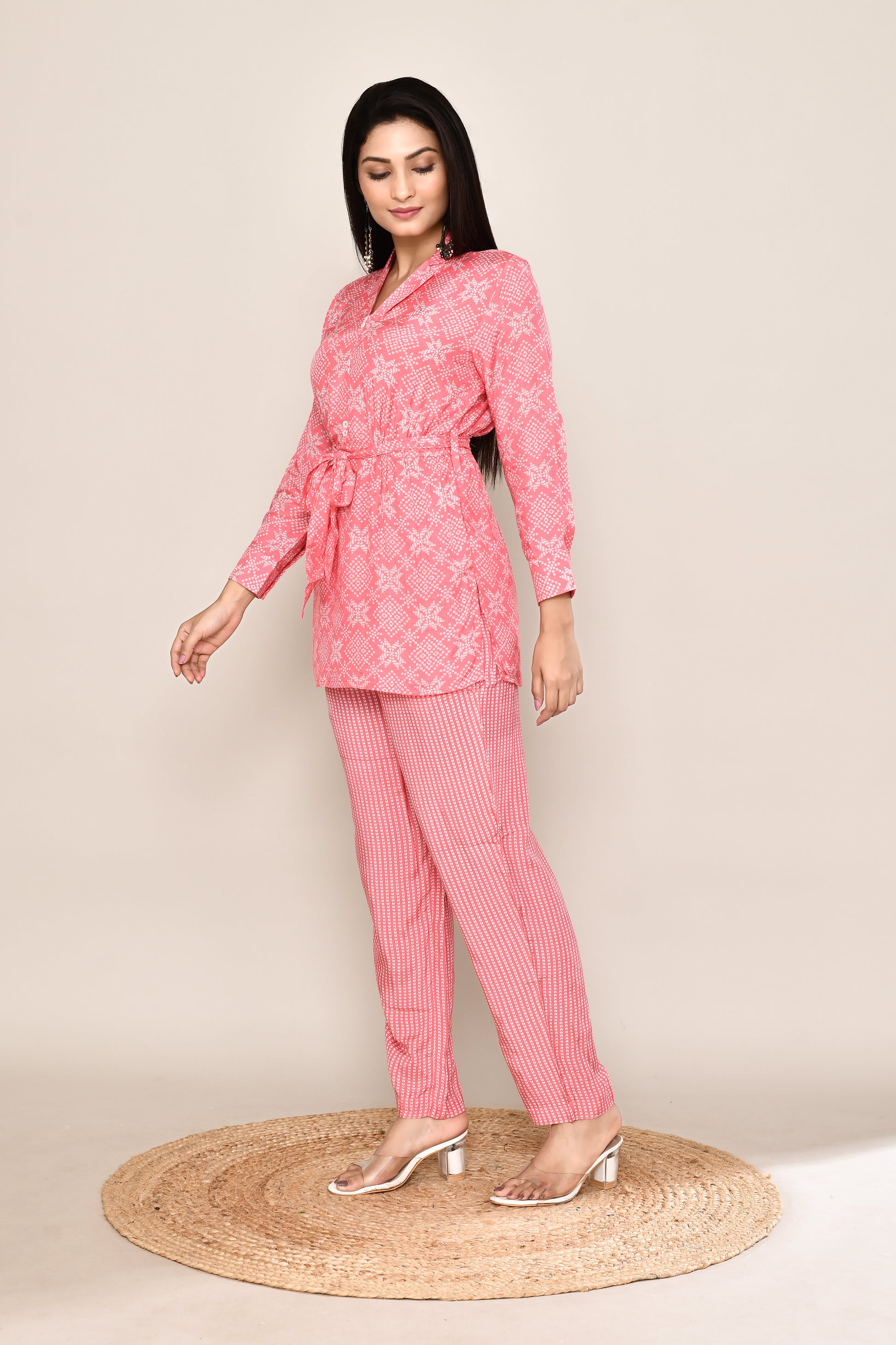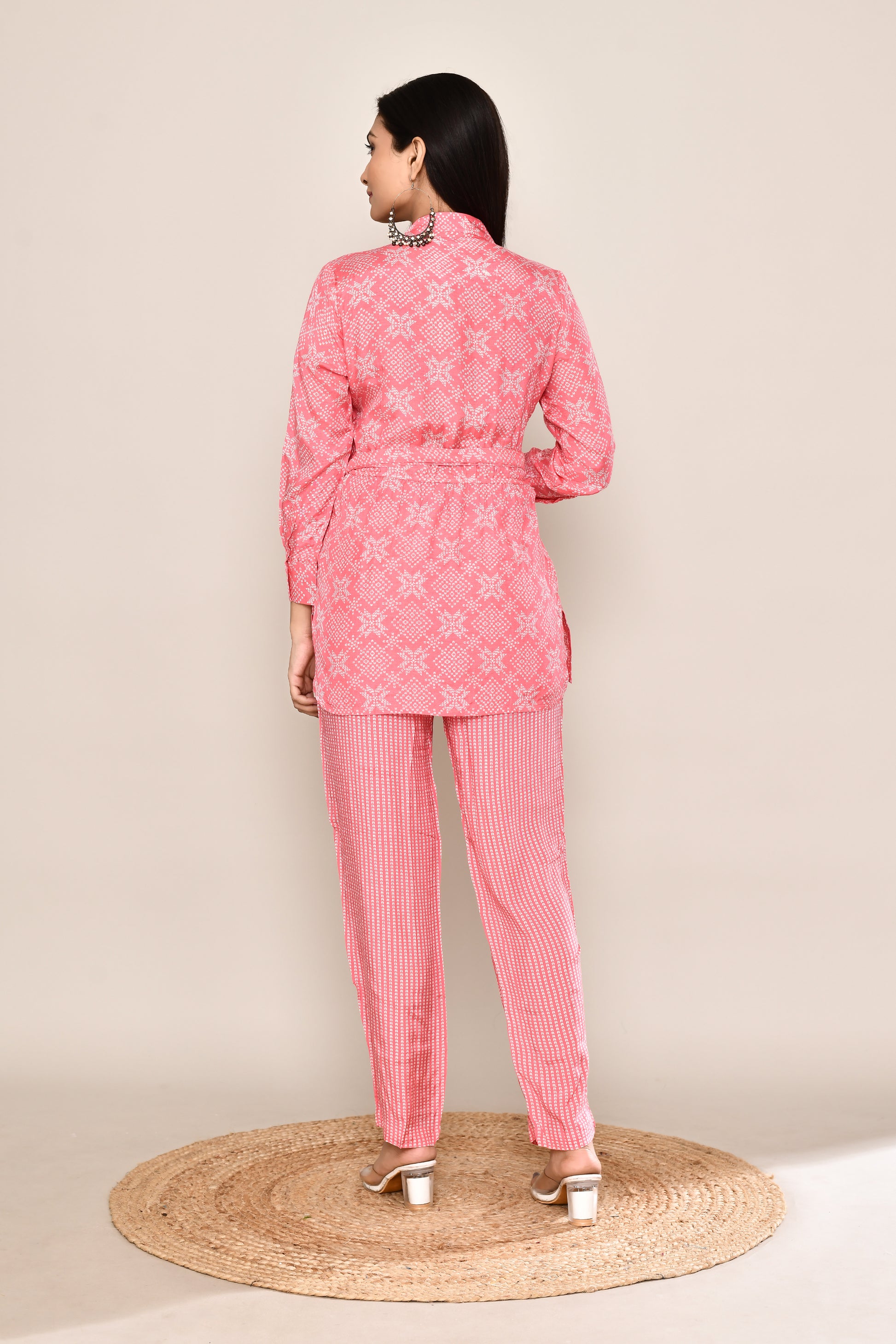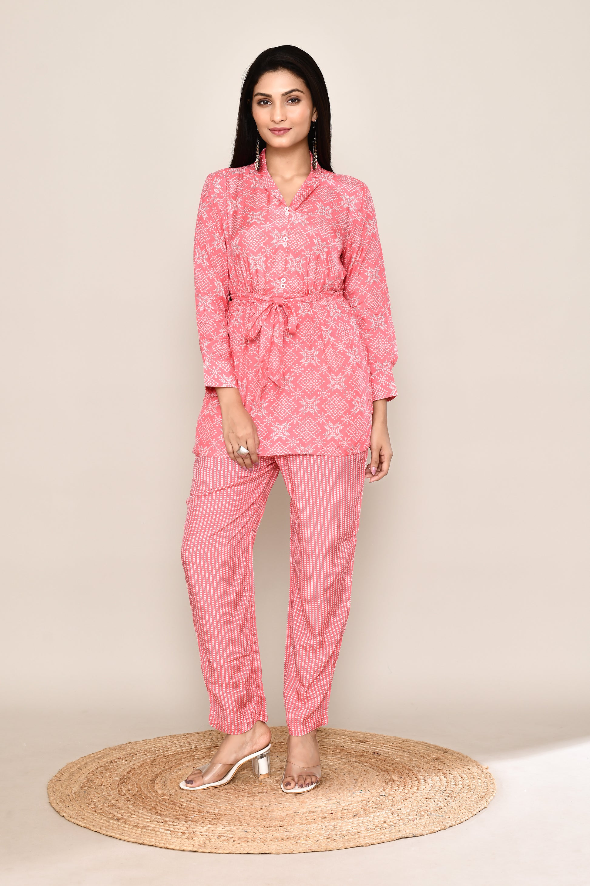 Kimono Style Short Top Pink Co-ord Set With Bandhani Print