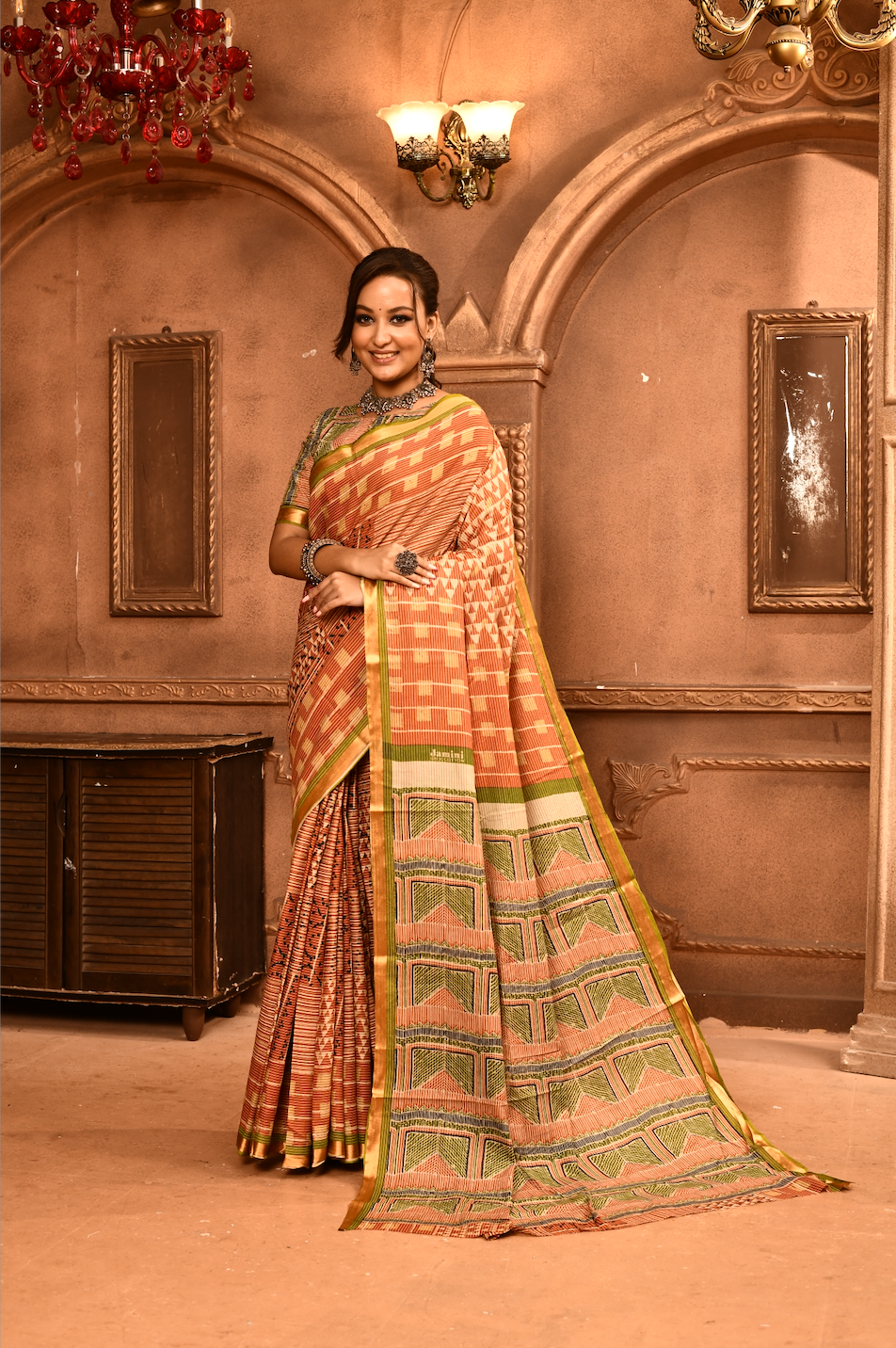 Our 100% Jamini Cotton Sarees carry forward a legacy of elegance and craftsmanship. These sarees are lightweight, breathable, and perfect for every occasion, from daily wear to festive gatherings.