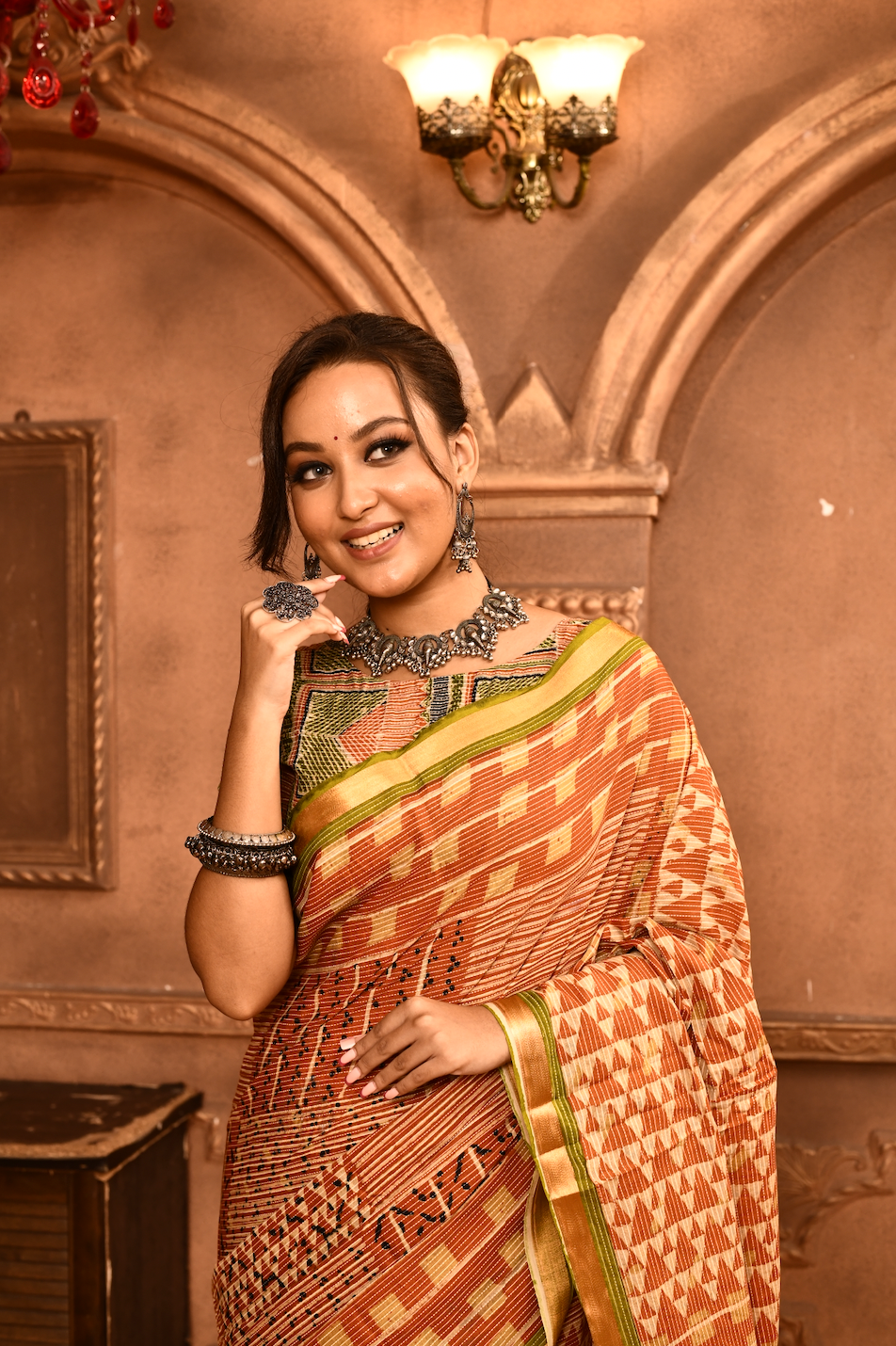 Roopkaantha Mrittika- Orange 100% Organic Cotton Saree