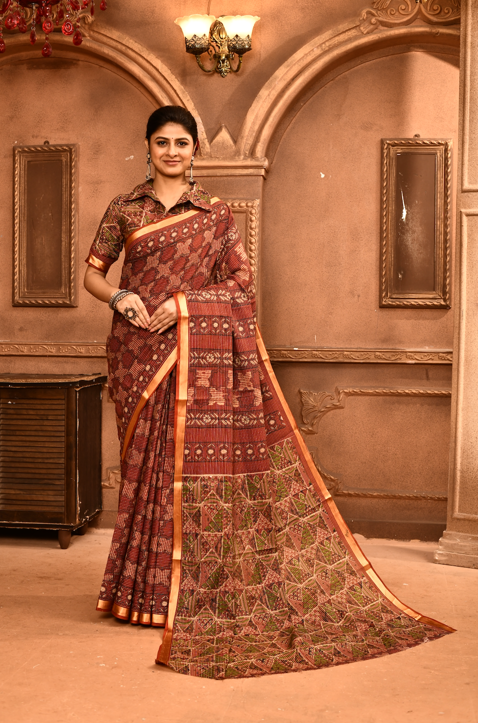 Our 100% Jamini Cotton Sarees carry forward a legacy of elegance and craftsmanship. These sarees are lightweight, breathable, and perfect for every occasion, from daily wear to festive gatherings.