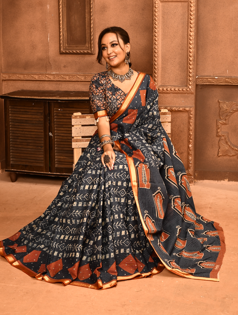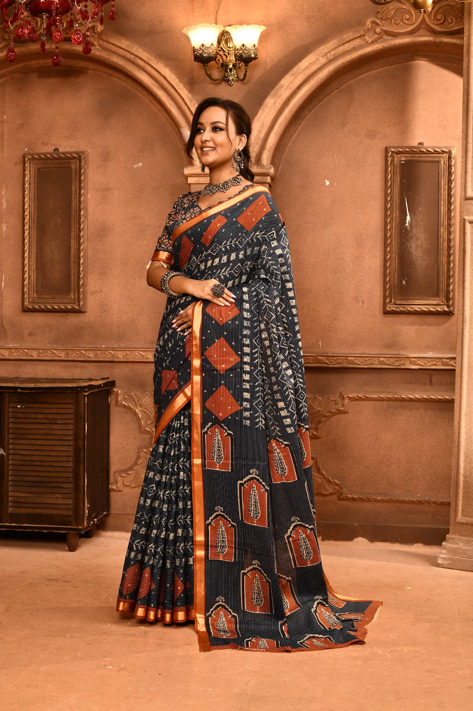 Roopkaantha Tithi - Navy Blue 100% Organic Cotton Saree