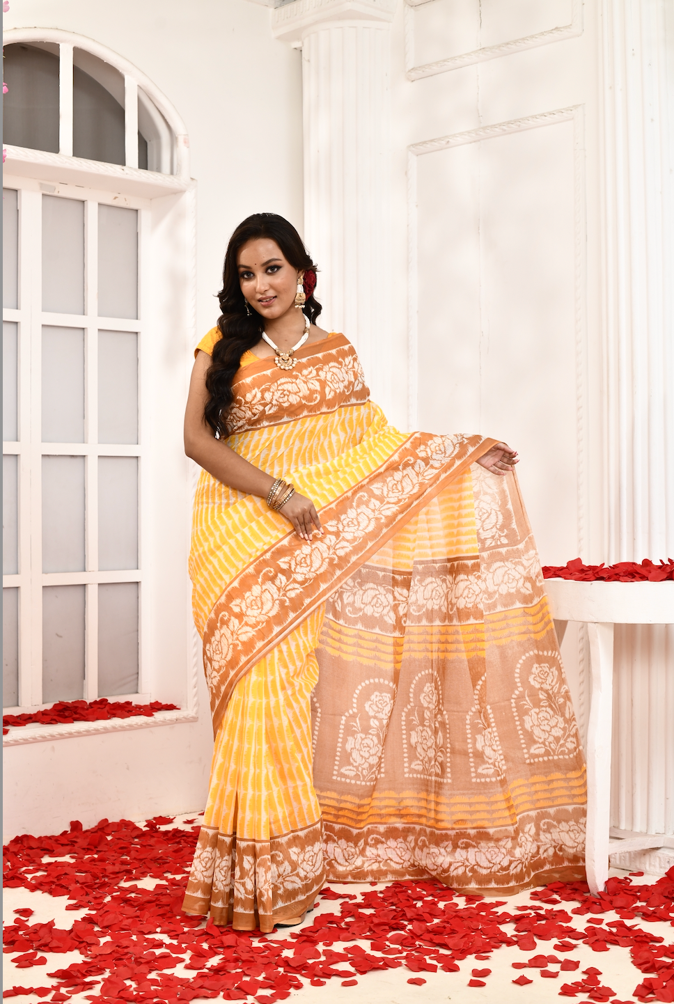 Our 100% Jamini Cotton Sarees carry forward a legacy of elegance and craftsmanship. These sarees are lightweight, breathable, and perfect for every occasion, from daily wear to festive gatherings.