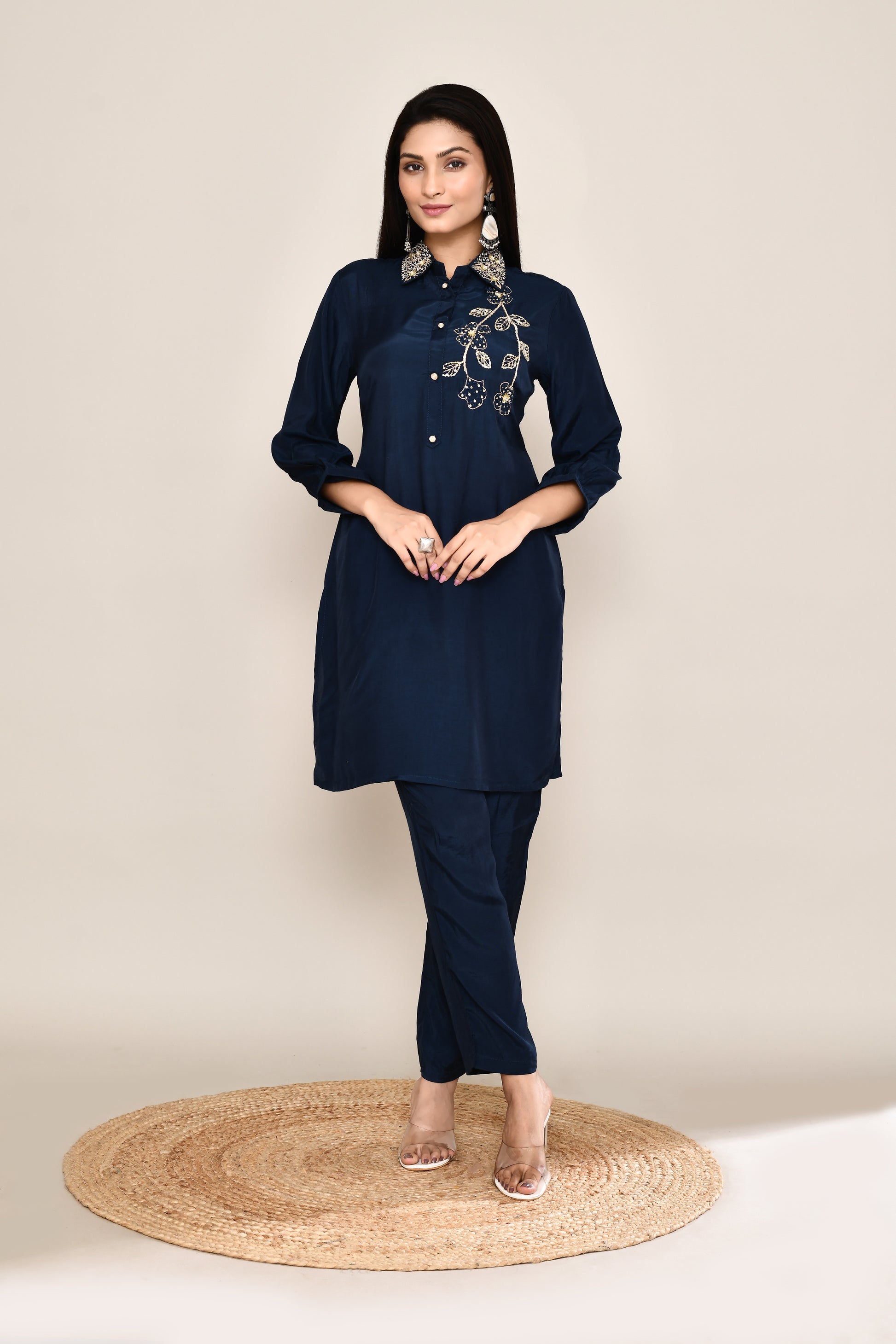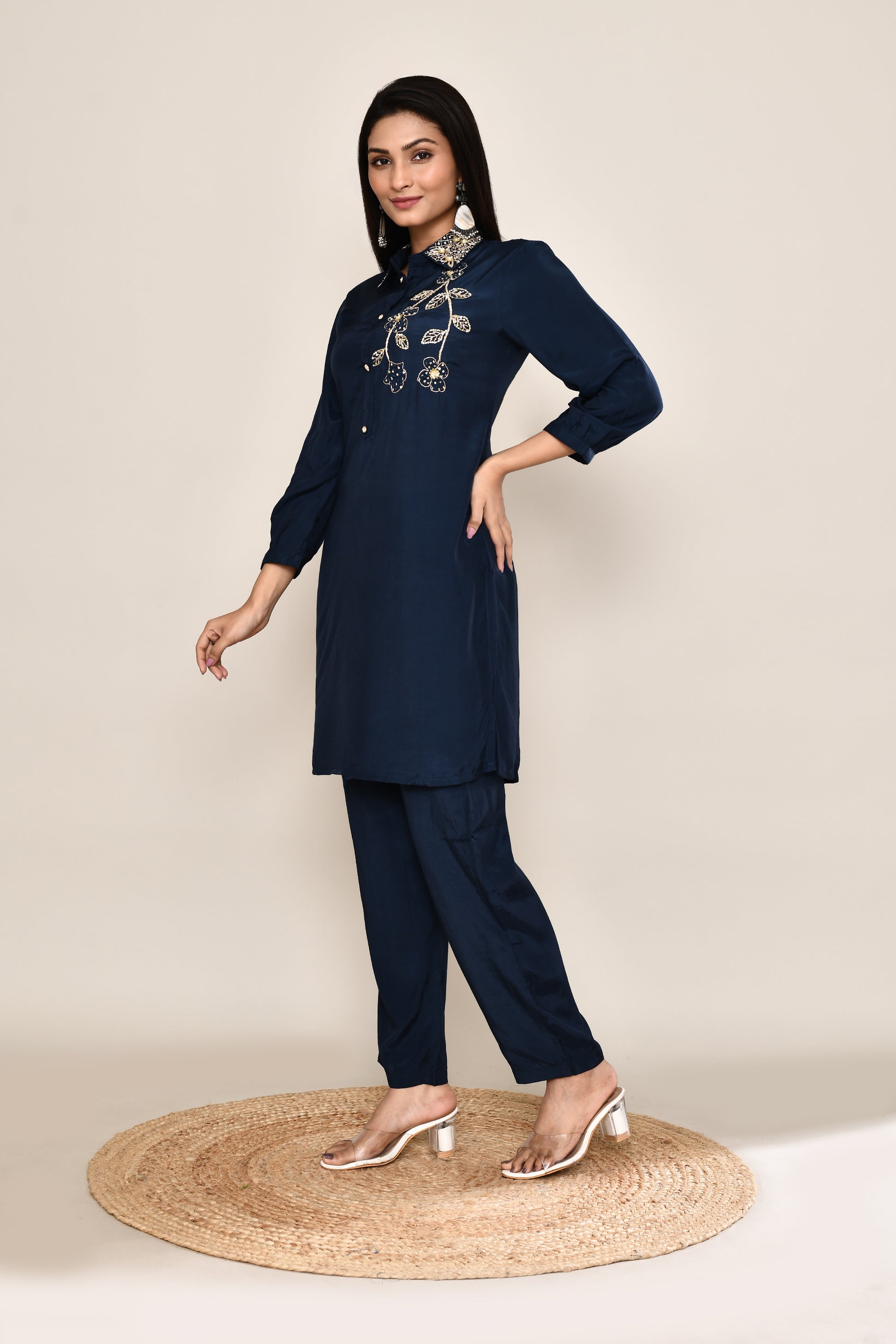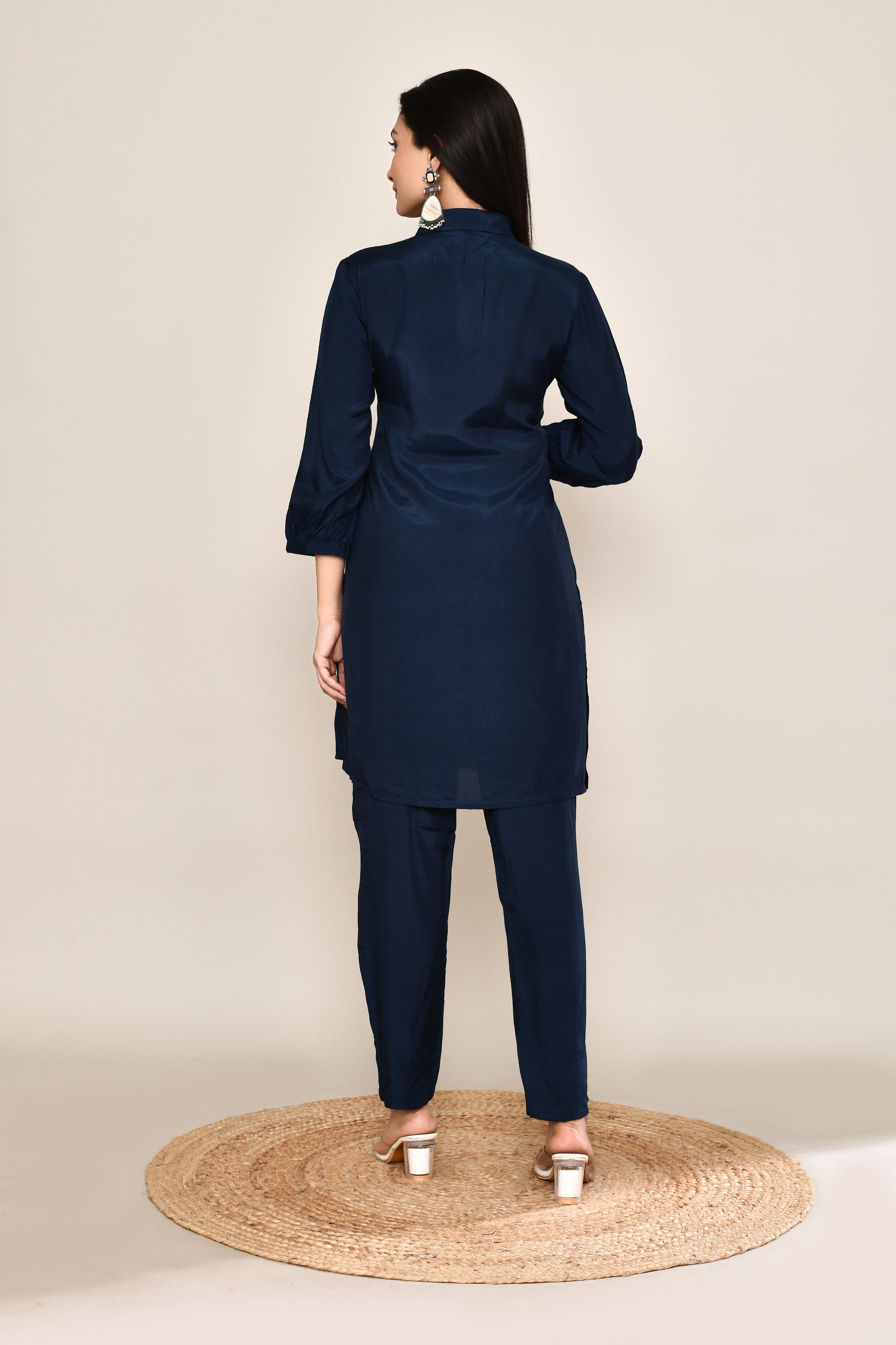Midnight Blue Festive Co-ord Set With Fancy Zari Embroidery